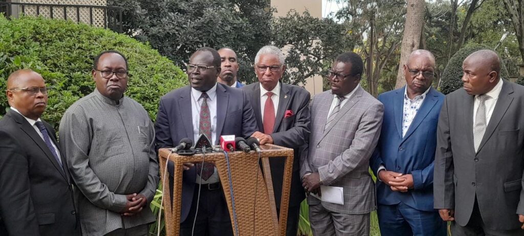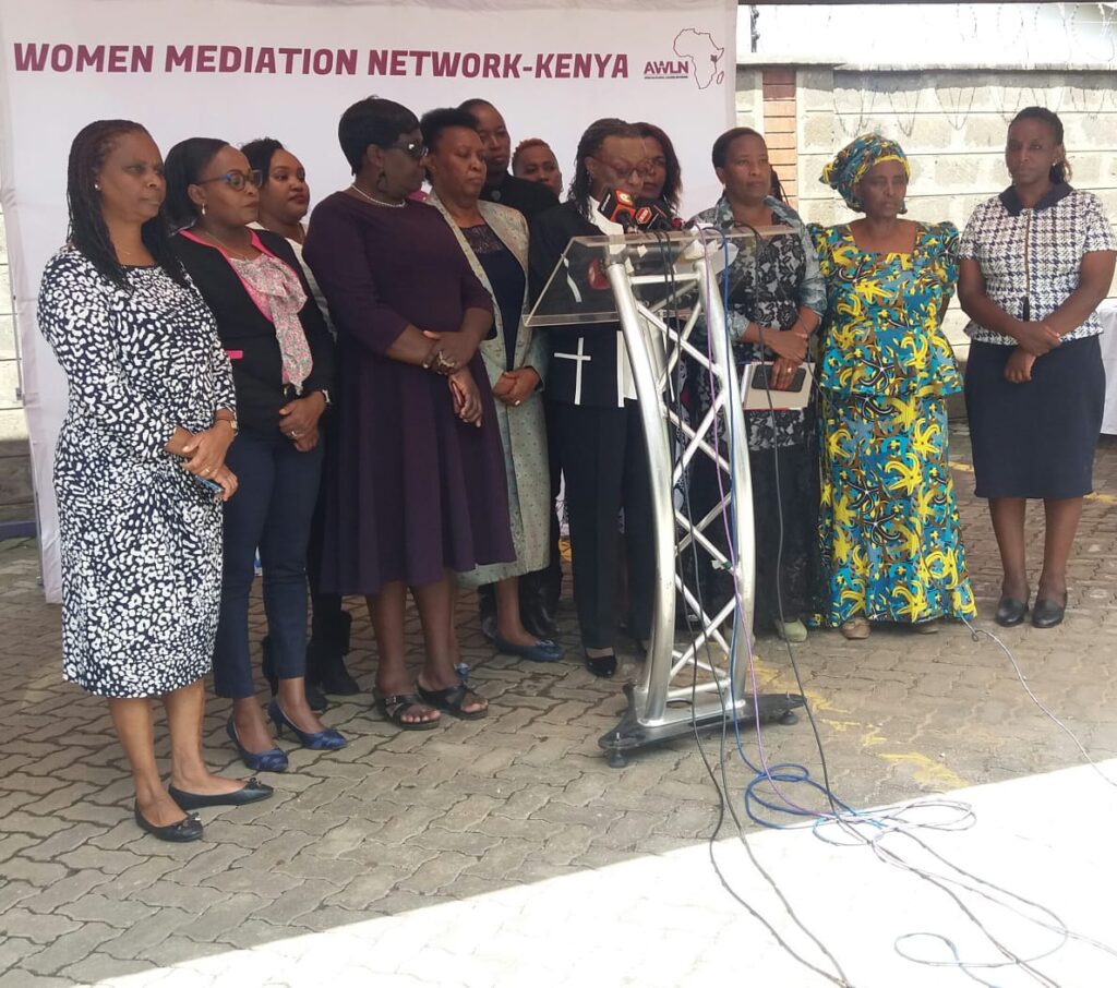 A Women’s lobby groups under the African Women Leaders Network (AWLN) and the Women Mediation Network in Kenya have called for the nation to pull together in the wake of the heightened political temperatures in the country. Speaking to the press in their offices in Nairobi, the Women leaders said there was an urgent need for the country to address the critical issues facing the nation. ” We speak with agony as mothers and womb bearers of the country because as always, women and children stand to suffer the most when the nation is at pain” they said. In a statement which they jointly read to the media, the women leaders stressed three points which they said it was of more concern to them as the women of Kenya. They said their firstly concern as mothers of this country is to urge for a cease fire about the ongoing grandstanding between government and the opposition. They also said they were deeply concerned about the safety and security of thousands of families especially women and children whom they say were currently displaced from their homes and are camping in tents mostly in the bandit stricken counties. ” We urge the government and the humanitarian agencies to move swiftly and provide decent accommodation, food, medicine and other critical services to curb further suffering on these families” they stated. Lastly, they appreciated President William Ruto’s leadership and specifically in the appointment of women into top leadership in his government. They however urged for more inclusion in government of women with disabilities some thing they noted was missing in the list of appointments and they implore that the matter be looked upon with urgency. The lobby group urged the government to continue listening to the voices of Kenyans and move quickly to address the cost of living in the country.